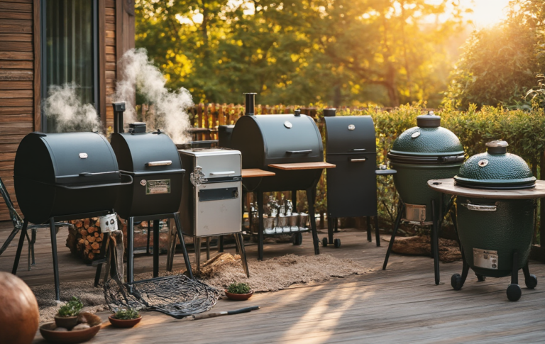 - Größe & Volumen – Wähle Größe nach Bedarf: ausreichend Grillrostfläche und höhenverstellbare Ebenen für große Braten oder viele Racks; achte auf Standfläche, damit dein Smoker-Grill neben Gartenmöbeln gut passt.